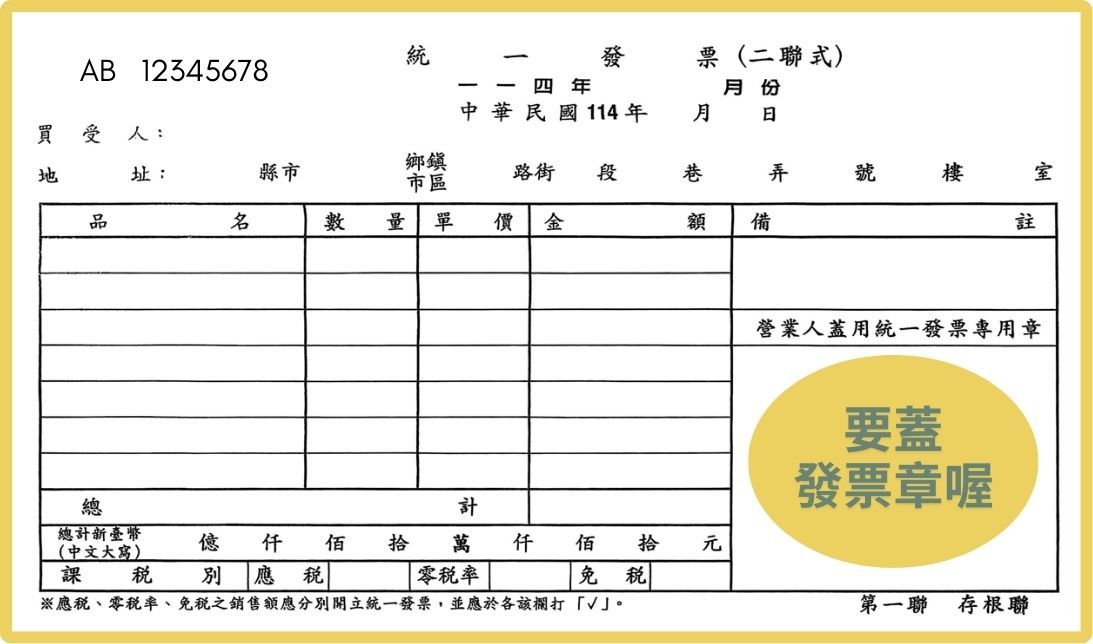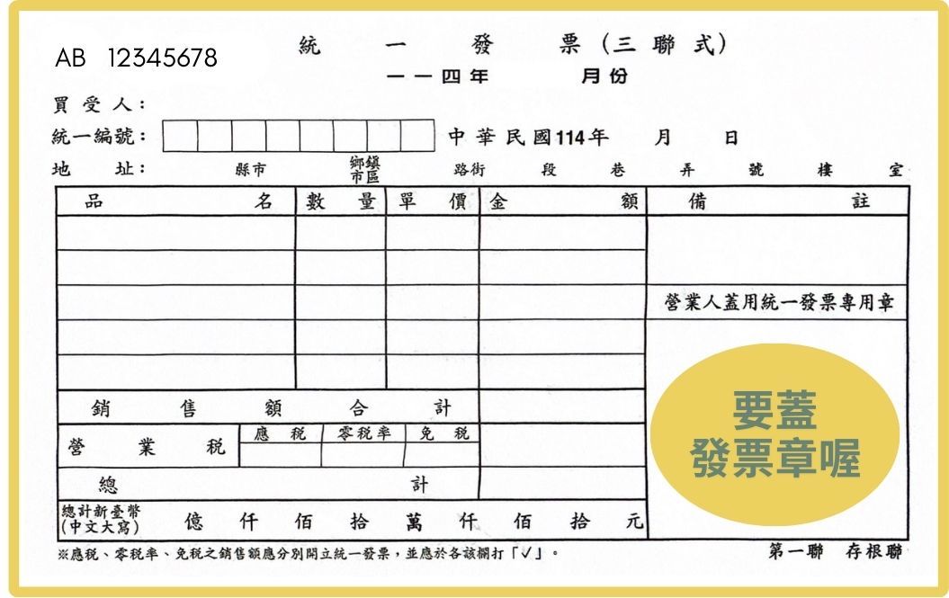 蓋發票章:確認無誤後蓋章。